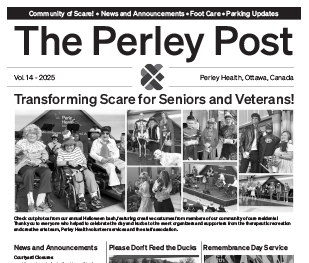 Pick up the latest edition of the Perley Post around Perley Health! Found in the cafeteria, communication sub-stations, and the main entrance.